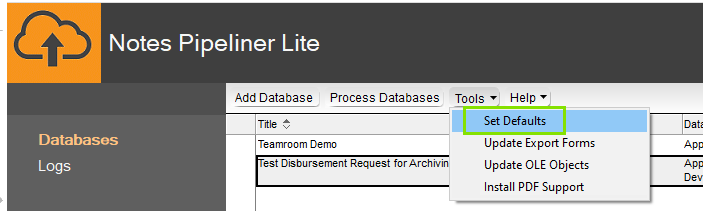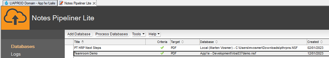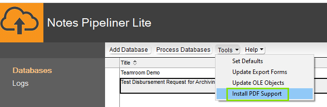 Now the Notes database is added, how do you convert Notes to PDF? You do this by selecting “Process Databases”.