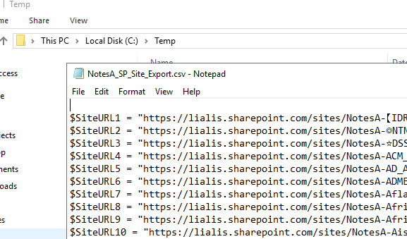 You may now copy all found URLS in the script below to easily clean up the SP sites you want to delete.