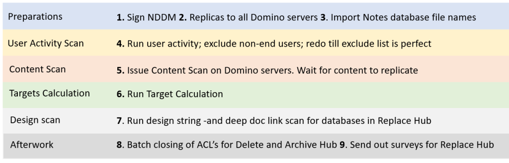 The Notes database User Activity and Content Scan will generate a lot of details. The final step is an automated analysis by NDDM based on algorithms of the User Activity and Content resulting in a very accurate advise on how the Notes database is really used. In other words the advised decommission Target (‘Replace’, ‘Delete’ or ‘Archive’).