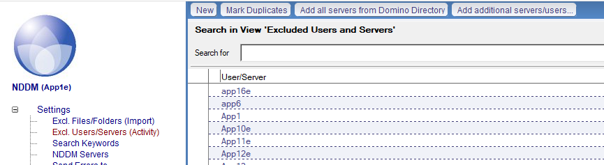 You may use the button “Add additional servers/users” to paste Server and user names from Domino groups to quickly setup the exclusions.