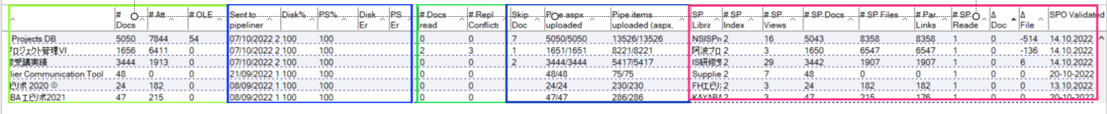 #SP Index: Number of index files in the SPO library. Pipeliner creates an ‘.index.aspx’ and a ‘z. IONET Info View.aspx’ file in the SPO library.