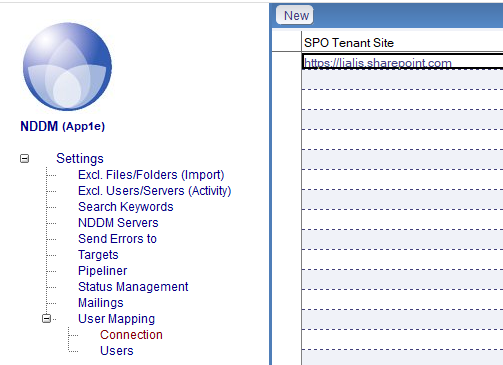 The SPO account lookup is done via PowerShell. The connection details (tenant url) and Azure connection credentials that PowerShell needs are specified in the Settings/User Mapping/Connection view in NDDM.