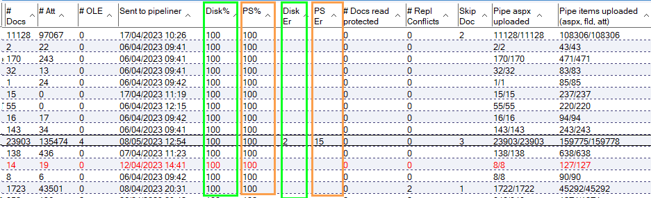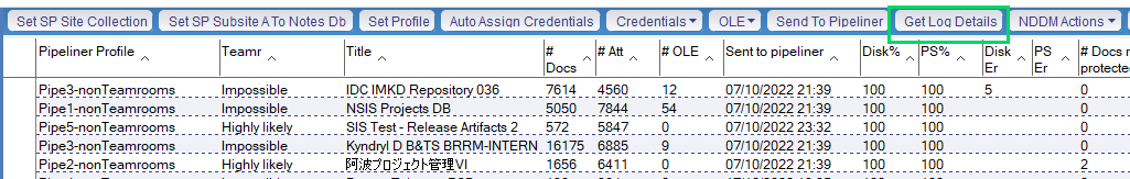 The NDDM image below shows in green the Notes database statistics, in blue the Pipeliner migration results and in purple the SPO site scan statistics. If the delta docs and delta files display zero, we have a perfect match.