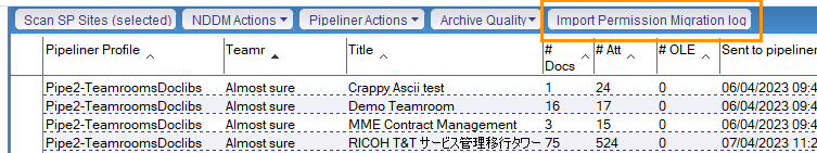 Finally press this action to import the permissions migration log of the sites you have just processed. This log is stored on your PC.