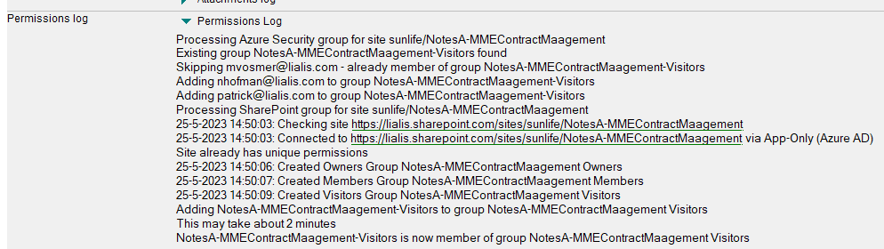 In this example, 2 databases were processed. First all Azure Security groups are processed. After that, all SPO groups are processed.