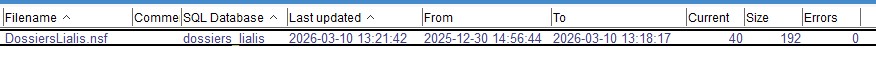 In some cases, migration runs can take days or even weeks. The Lialis Notes 2 SQL tooling monitors the maximum agent runtime on the Domino server and will automatically stop just before the server terminates the agent. On the next run, it will continue using the updated agent runtime settings. This ensures you don’t have to worry about the Domino agent timeout being shorter than the total migration duration.