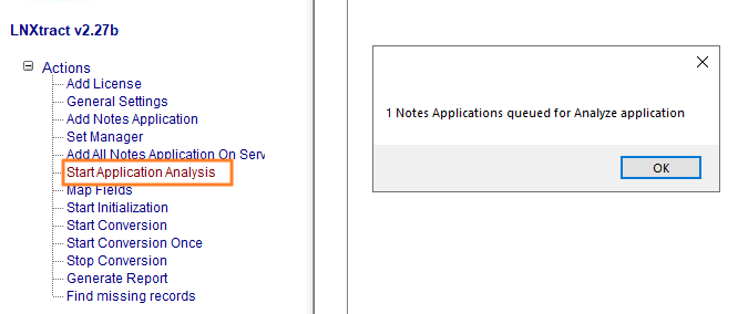Then select the Notes database and press Start Application Analysis. The Domino server will automatically take care of the Notes to SQL migration duties.