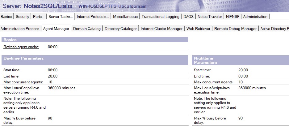 The agent may run for a long time depending on the size of the database that you convert. We advise to have the “Max LotusScript/Java execution time” set at at least 6 hours.