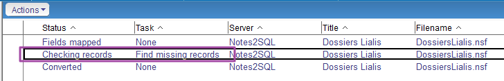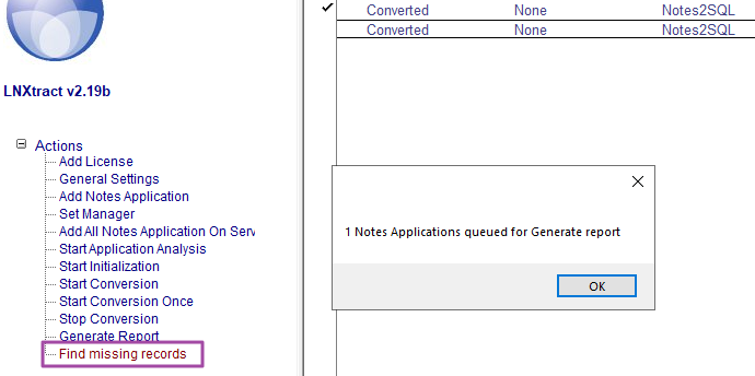 Use the option Find Missing Records. The Domino server will perform this check, and the results are stored in the Missing Records Reports. Keep in mind that this operation can take some time. To use the Find Missing Records option you must first stop the conversion by the way.