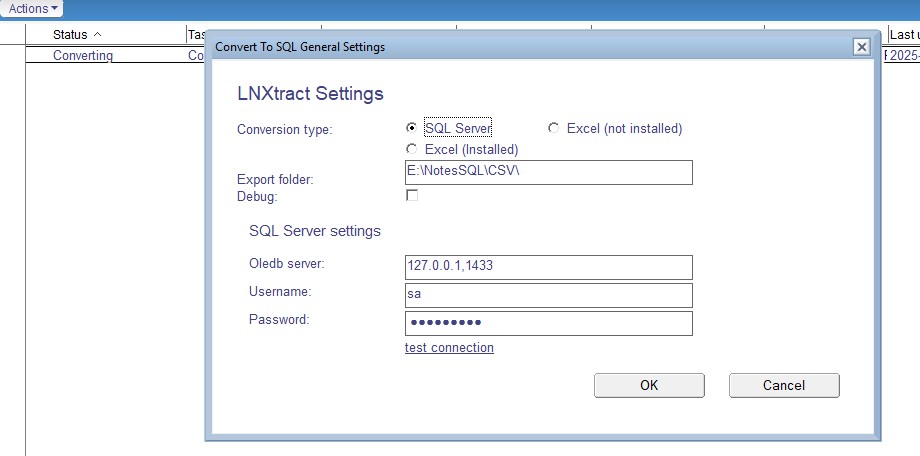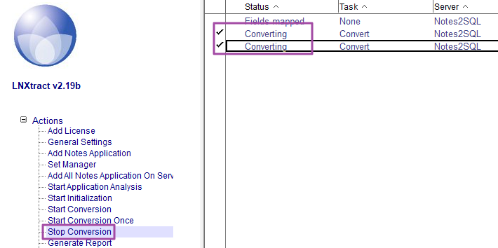 Finally, click Start conversion (Once) to send the Notes content to the SQL database. The Domino server will execute this action.