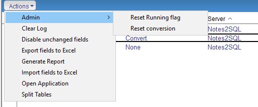 Admin \ Reset Conversion – when you use this option on a Notes application in the tool it will reset the conversion. In the next run the migration will start from scratch.