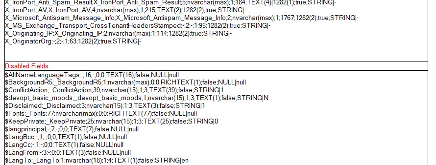 In this phase, the software checks every field on every document in the Notes database to determine its details — such as type, content, length, whether it’s multi value, rich text, etc. This information is required for the next step, where the SQL tables will be created. When this phase is completed, you will find details like the example below in the Notes database record. We dont look at the Notes forms to determine the data that is stored in the Notes documents.