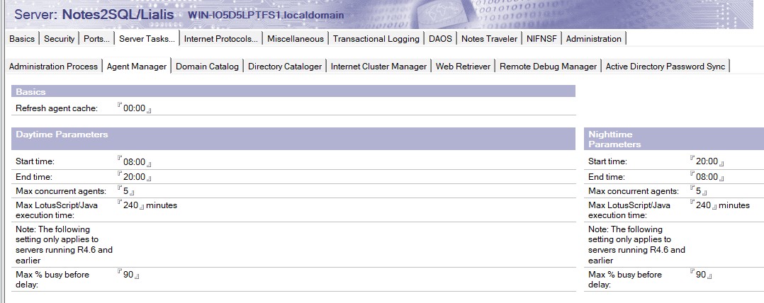 The agent may run for a long time depending on the size of the database that you convert. We advise to have the “Max LotusScript/Java execution time” set it to 240 minutes.